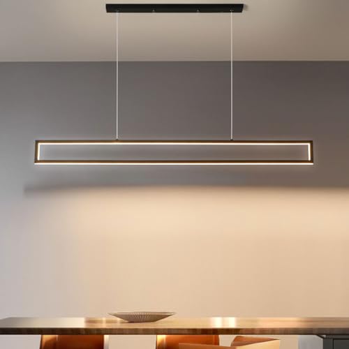 Modern Dining Table Lamp LED Pendant Lamp Dimmable, Pendant Lamp with Remote Control Pendant Lamp Linear Design, Height Adjustable Chandelier for Kitchen Dining Room Lamp Office Ceiling Light LWX