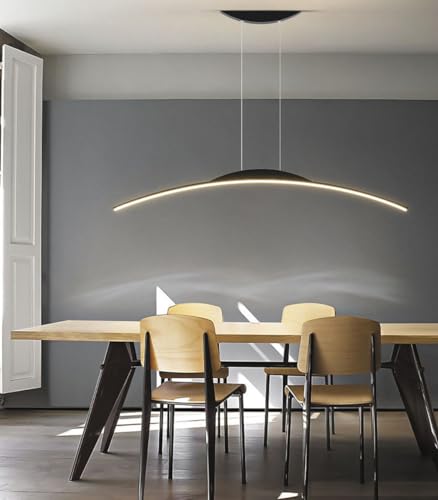 YCVAWEOD LED Pendant Light Modern Curved Design Pendant Light Color/Brightness 3000K-60000K Adjustable Dining Room Chandelier with Remote Control for Coffee Table Bar Office Pendant Lamp (Black) LWX