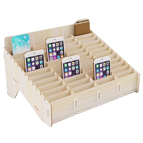 TEHAUX Wooden Mobile Phone Management Rack Display Box for Classroom Office Use Cell Phone Holder Storage Container