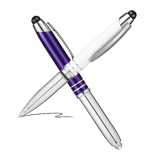 TEHAUX 2pcs Ballpoint Pens with Stylus Tips and Light, 3 in 1 Metal 1.0mm Black Ink Writing Capacitive Tablet Stylus Pen for Touch Screen Phone Office Study Drawing Use