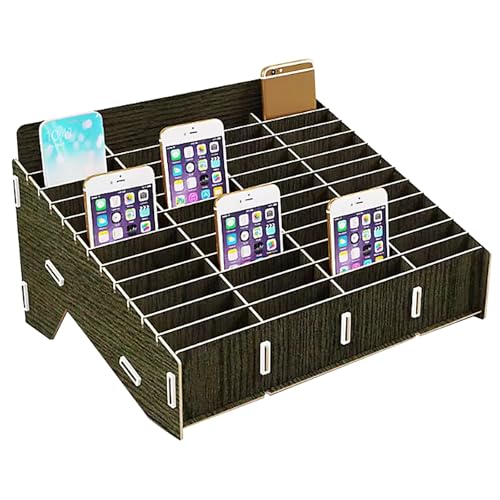 QSNYJPL 48-Grid Wooden Cell Phone Storage Box, Desktop Mobile Cell Phone Storage for Teachers School Office, Cell Phone Box for Classroom, Grid Multi Cell Phone Rack Display(Black)