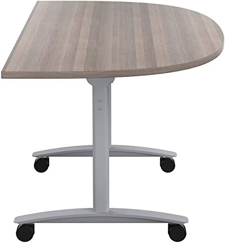 Office Hippo D-End Office Table, Sturdy & Stylish Tilting Table Desk, Work Table For Home Office, Versatile Desk Table For Meeting Room or Boardroom, 5 Year Guarantee - Grey Oak / Silver