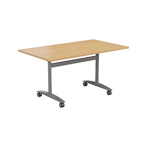 Office Hippo Office Table, Sturdy & Stylish Tilting Table Desk, Work Table For Home Office, Versatile Computer Table For Meeting Room or Boardroom, 5 Year Guarantee - Oak / Silver