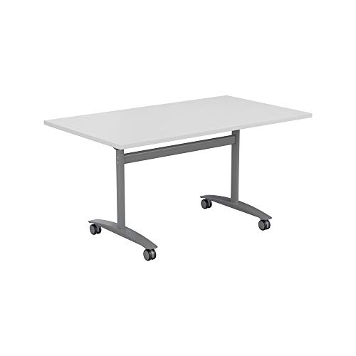 Office Hippo Office Table, Sturdy & Stylish Tilting Table Desk, Work Table For Home Office, Versatile Computer Table For Meeting Room or Boardroom, 5 Year Guarantee - White / Silver