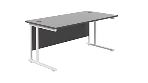 Office Hippo Heavy Duty Rectangular Cantilever Office Desk, Home Office Desk, Office Table, Integrated Cable Ports, PC Desk For Office or Home, 5 Yr Wty - White Frame/Black Top, 160cm x 80cm