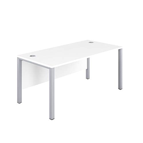 Office Hippo Heavy Duty Rectangular Goalpost Office Desk, Home Office Desk, Office Table, Integrated Cable Ports, PC Desk For Office or Home, 5 Yr Wty, MFC - White Top, Silver Legs, 160cm x 60cm