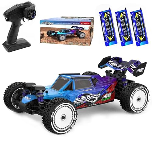 Teeggi 1/14 Remote Control Car for Adults, 100 km/h Top Speed, 3S Brushless Motor, RC Car, High Speed Offroad Drift Racing Car, 4WD Off Road Race Buggy, 3 Batteries (Hellbla)