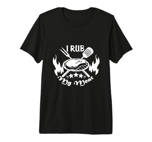 Funny Text I Rub My Meat BBQ Dad Offset Smoker Pit Accessory Premium T-Shirt