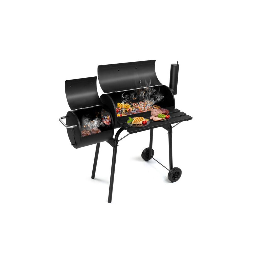Outdoor Charcoal BBQ Grill with Offset 2-in-1 Smoker and Wheels