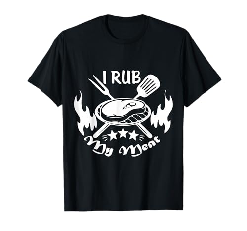 Funny Text I Rub My Meat BBQ Dad Offset Smoker Pit Accessory T-Shirt