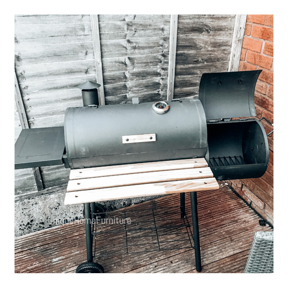 Charcoal Smoker BBQ Large Outdoor Offset Barbecue Grill Cooking Patio Barrel Pit