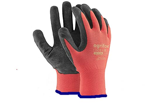 24 pairs of Ogrifox work gloves and a FUZZIO® clip glove holder(M - 8, Red)
