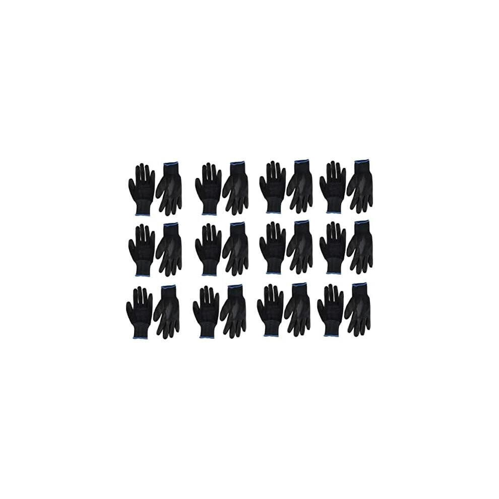 24 Pairs PU Coated Black Nylon Work Gloves. Gardening, Builders, Mechanic (XL)