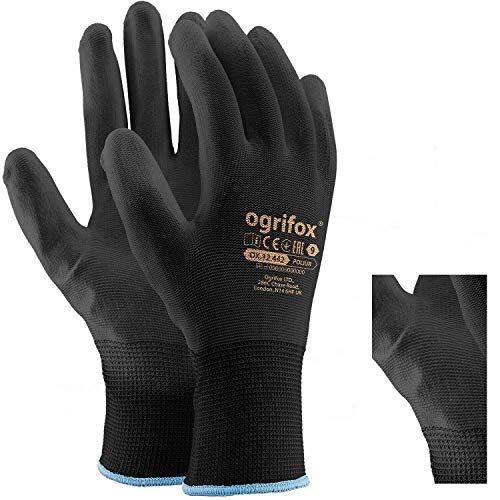 Ogrifox Ajs Ltd 24 Pairs Black Pu Coated Nylon Work Gloves for