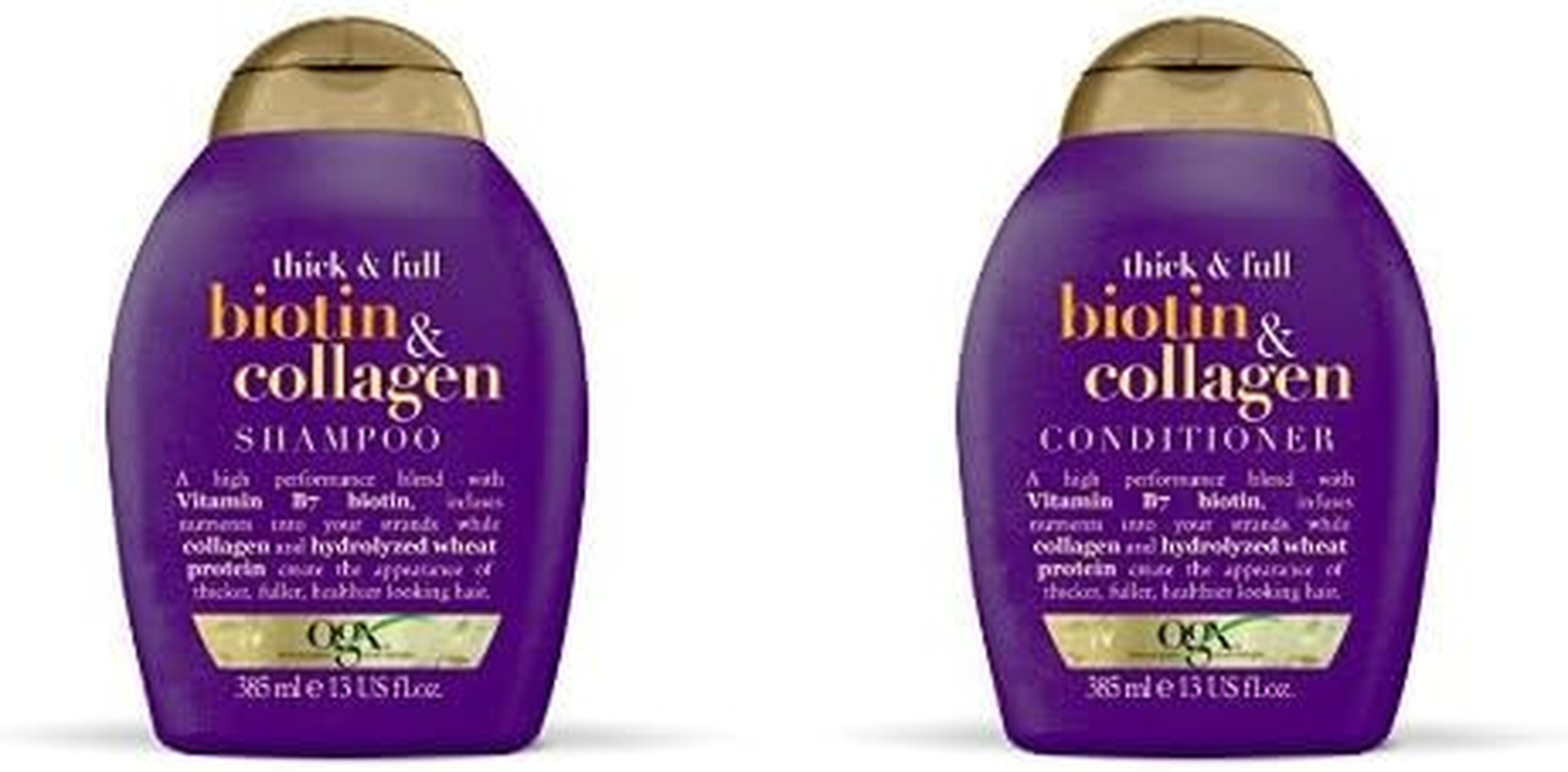 OGX Thick & Full + Biotin Collagen Shampoo Conditioner Set (packaging may vary) Purple 13 Fl Oz (Pack of 2)