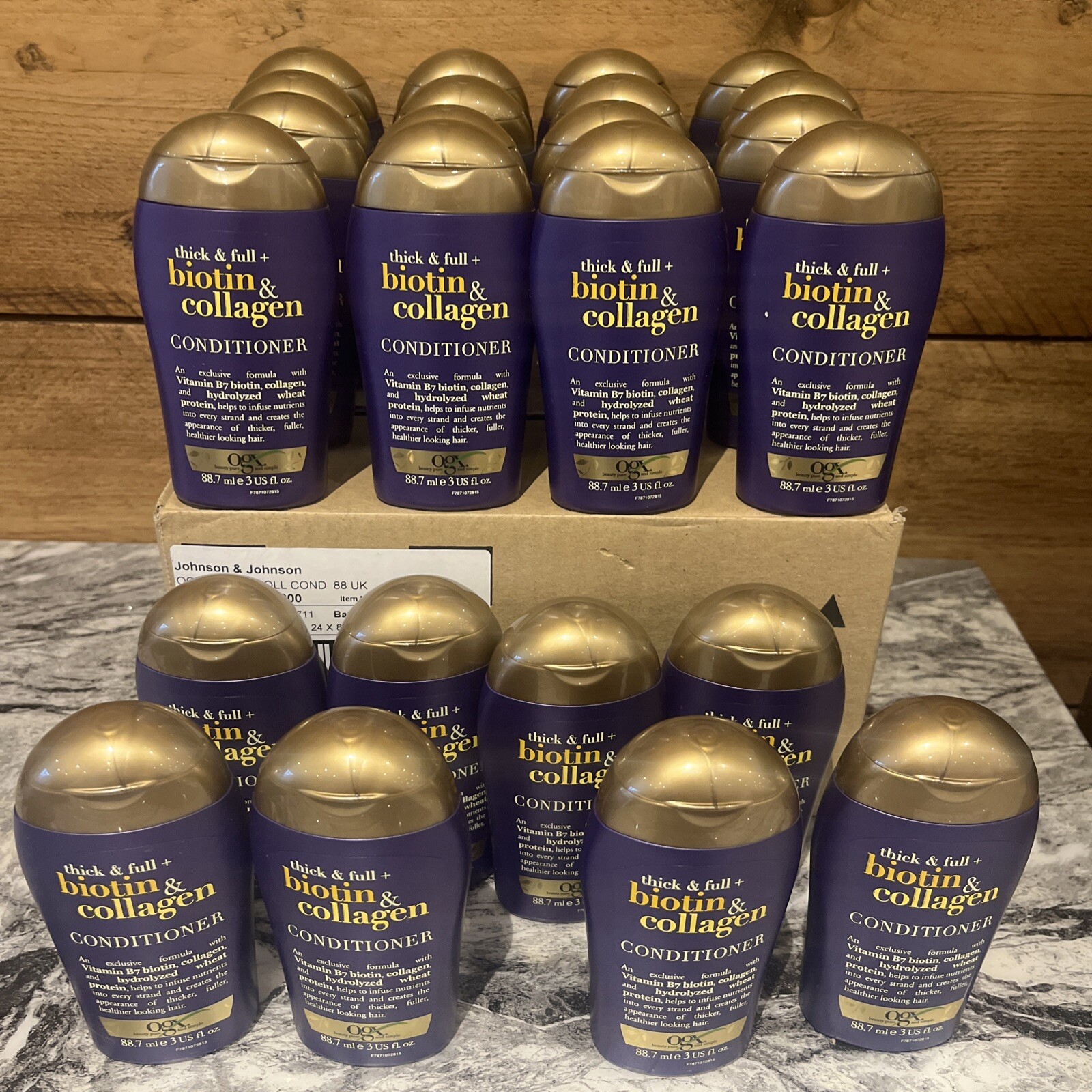 24 OGX Thick & Full + Biotin & Collagen Conditioners 88.7ml Travel Size Bulk Buy