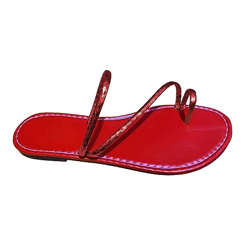 Uwdiohq Women's Beach Sandals Hollow Casual Slippers Flat Shoes Oh Yeah Women (Red, 4.5) Womens Size 6 Ladies' Summer Wide Fit Toe Post Ladies 5 for 8 UK Pretty Sparkly 7 Bling Silver Flip Flops