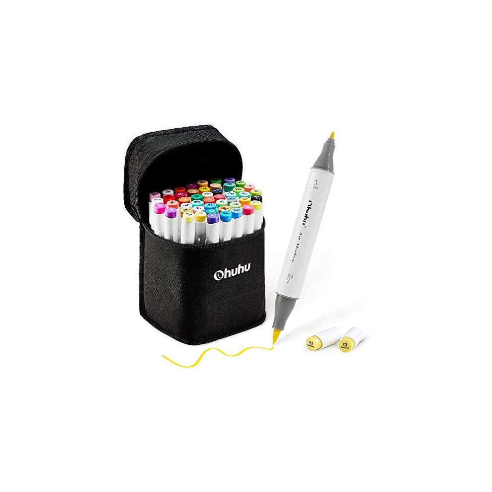 Ohuhu 48 Colours Alcohol Brush Markers, Double Tipped (Brush & Fine Tip) Sketch Markers, Artist Art Markers for Adult Coloring and Illustration, Bonu