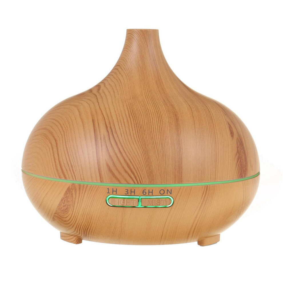 (Light wood grain, US Plug) 550ML Aroma Air Humidifier Wood Grain with LED Lights Essential Oil Diffuser Aromatherapy Electric Mist Maker for Home