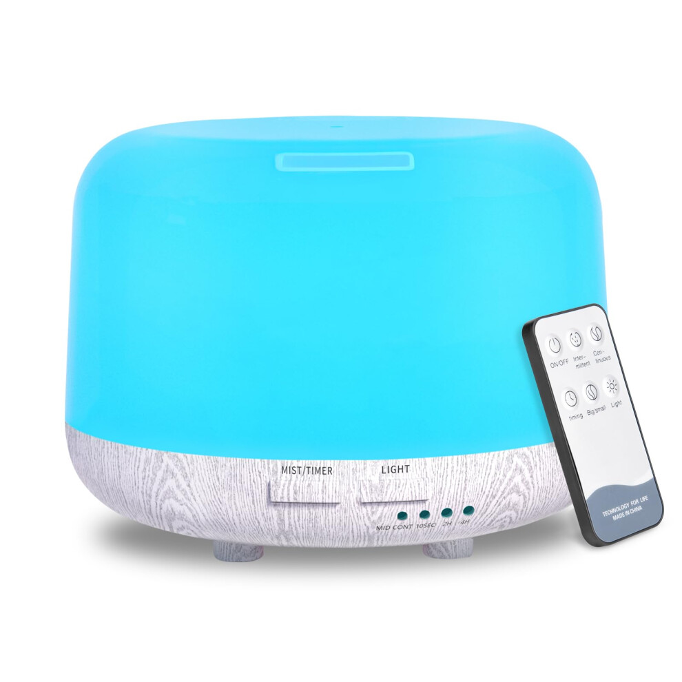 500ml Aroma Air Humidifier Essential Oil Diffuser Aromatherapy Electric Ultrasonic Mist Maker Remote Control Light wood grain + remote control