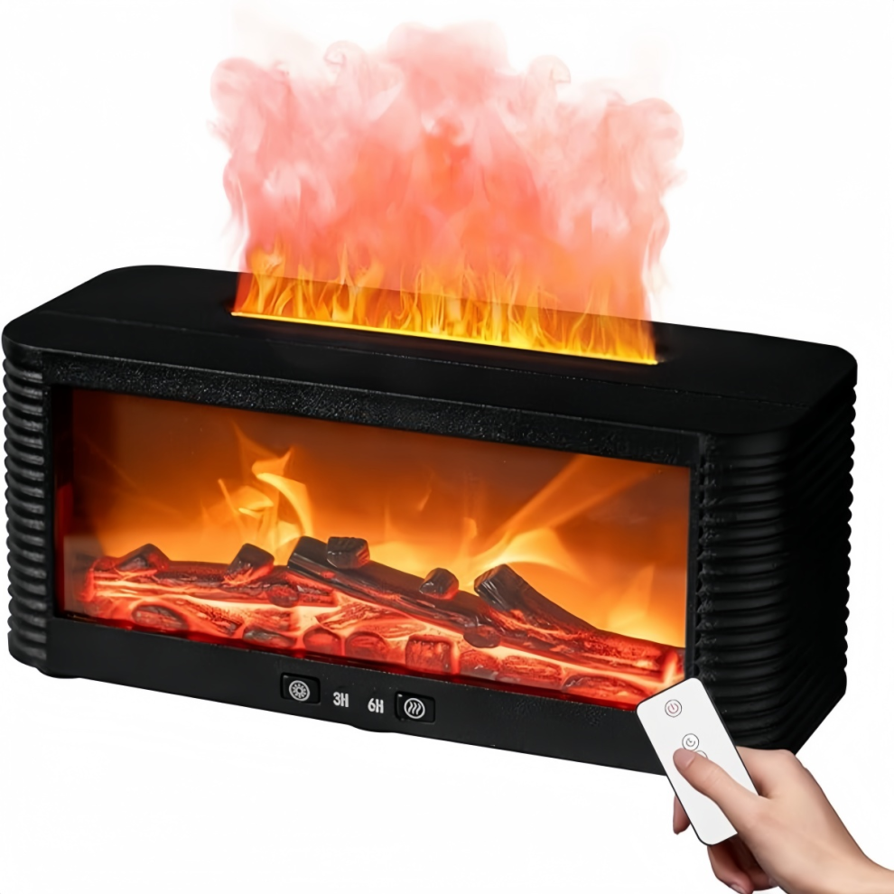 hzuisst Fireplace Diffuser, 7 Colours Flame Diffuser for Home with Timer, 250ml Waterless Auto Off Essential Oil Electric Diffuser for Home Bedroom Office