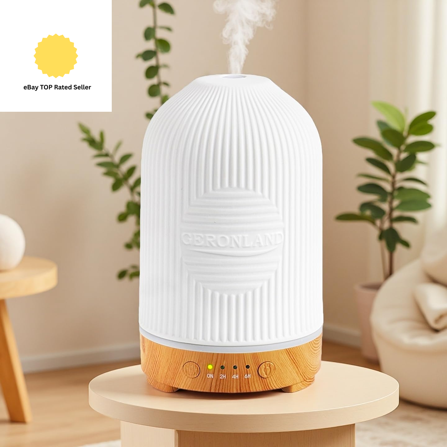 Ceramic Essential Oil Diffuser For Home Electric 200ml Large Humidifier Cool Mist Aromatherapy Premium Ultrasonic 4 In 1, 9 LED Lights, 4 Timer Adjust Settings