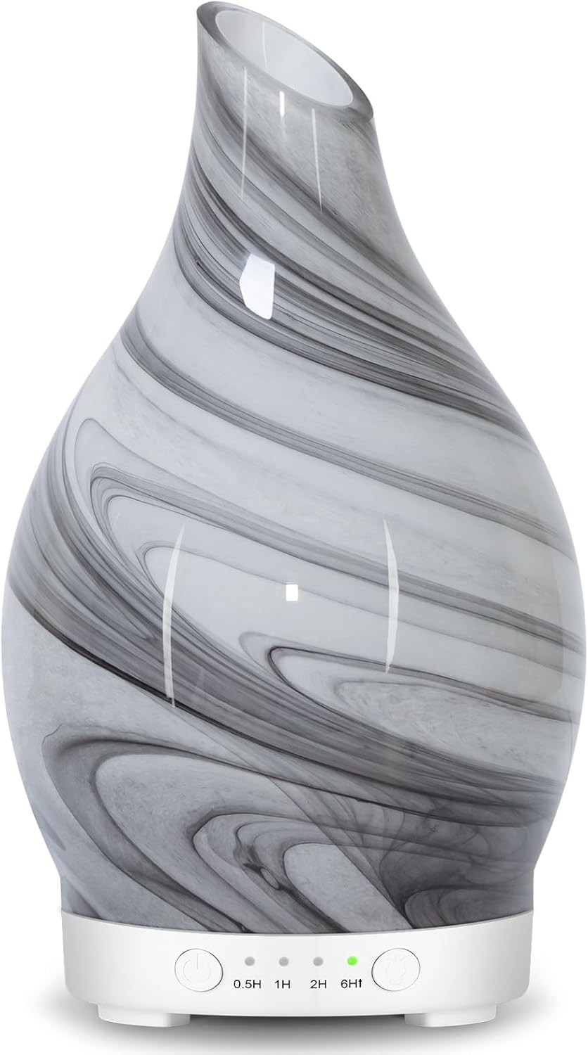 Essential Oil Diffuser Glass Aromatherapy Oil Diffuser Electric Ultrasonic Aroma Scent Fragrance Humidifier 150ML with Auto Shut Off 7 LED Lights for Home Office Spa (Grey Wave)