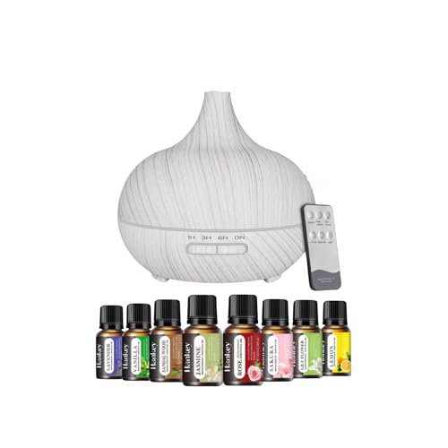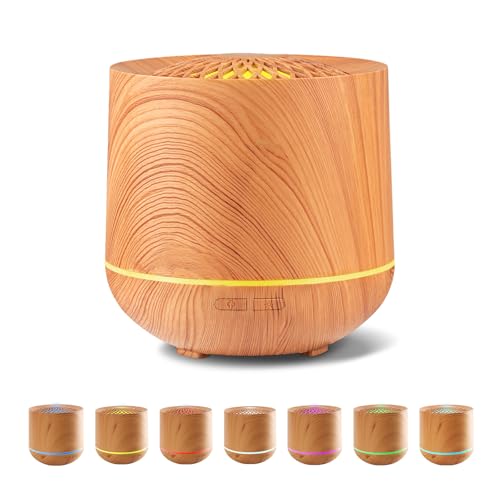 Diffusers 500ML with 8 Essential Oils Set - Essential Oil Diffuser with Remote Control - Aromatherapy Oil Diffusers With 7 LED Lights - Ultrasonic Cool Mist - For Home Bedroom Office - Wood Grain