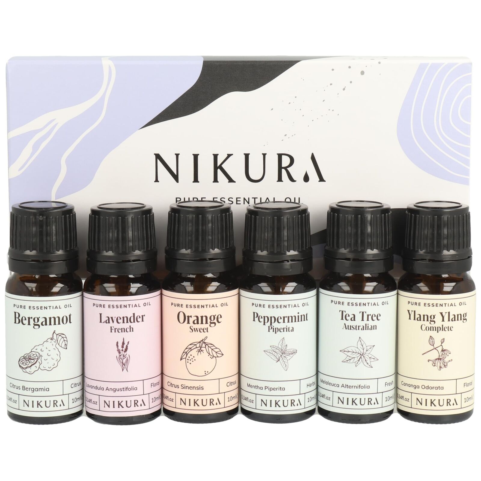 Nikura Best Sellers Essential Oil Gift Set 6 x 10ml Essential Oils for Diffusers