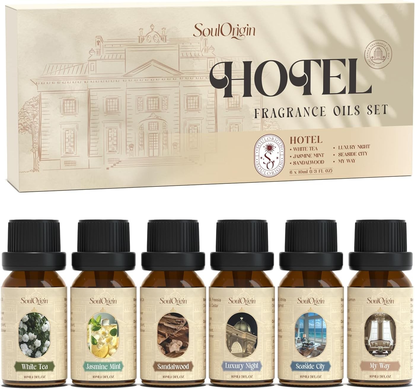 SoulOrigin Hotel Essential Oils Set for Oil Diffusers, Scented Oils for Soap Ca