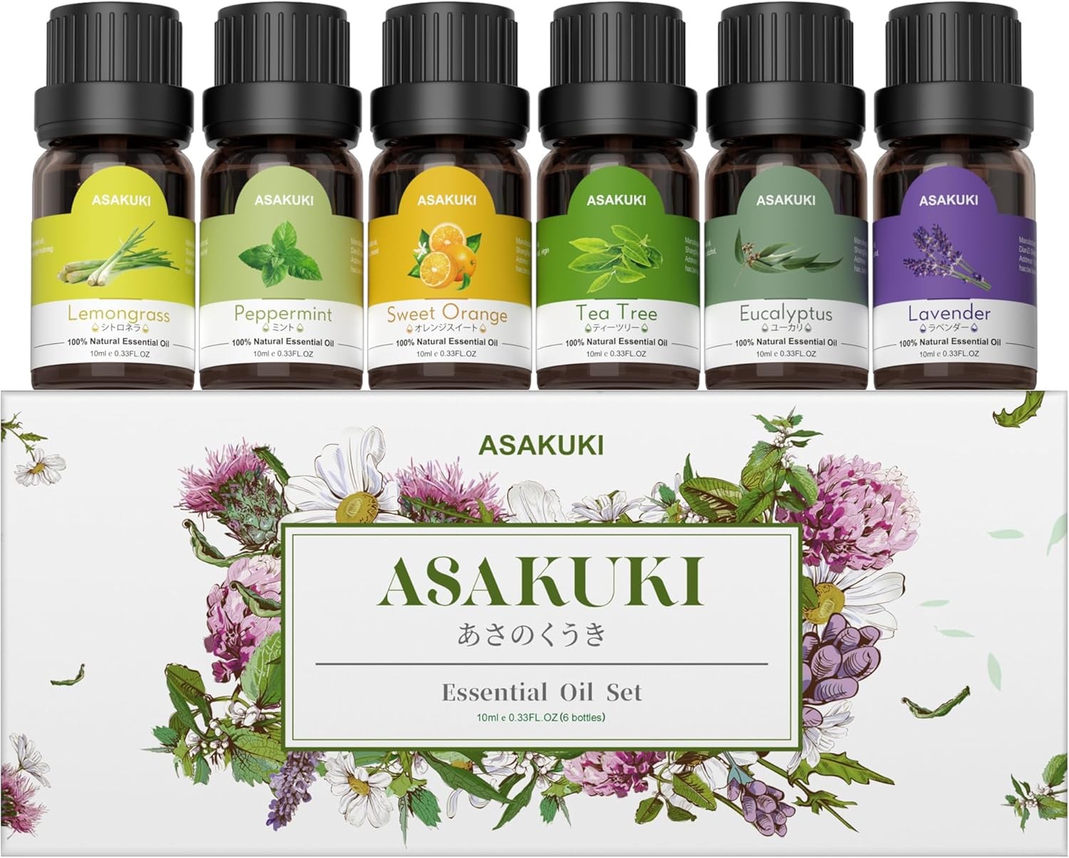 ASAKUKI Essential Oils for Diffusers for Home Top6 Essential Oil Aromatherapy G