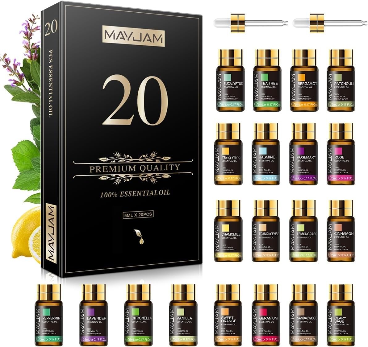 MAYJAM 20 Pcs Pure Essential Oil Gift Set, Essential Oils for Diffusers for Hom