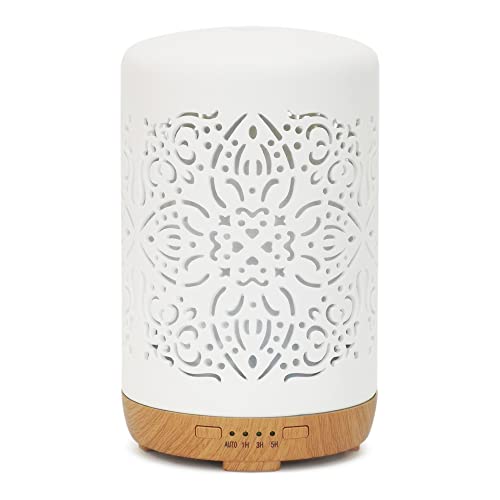 Earnest Living Essential Oil Diffuser White Ceramic Diffuser 250 ml Timers Night Lights and Auto Off Function Home Office Humidifier Aromatherapy Diffusers for Essential Oils
