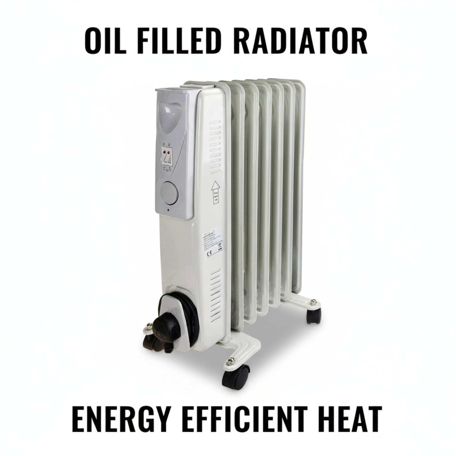 NRG 7 Fin Oil Filled Radiator Portable Electric Heater - Adjustable Thermostat-3 heat setting 1.5KW Black