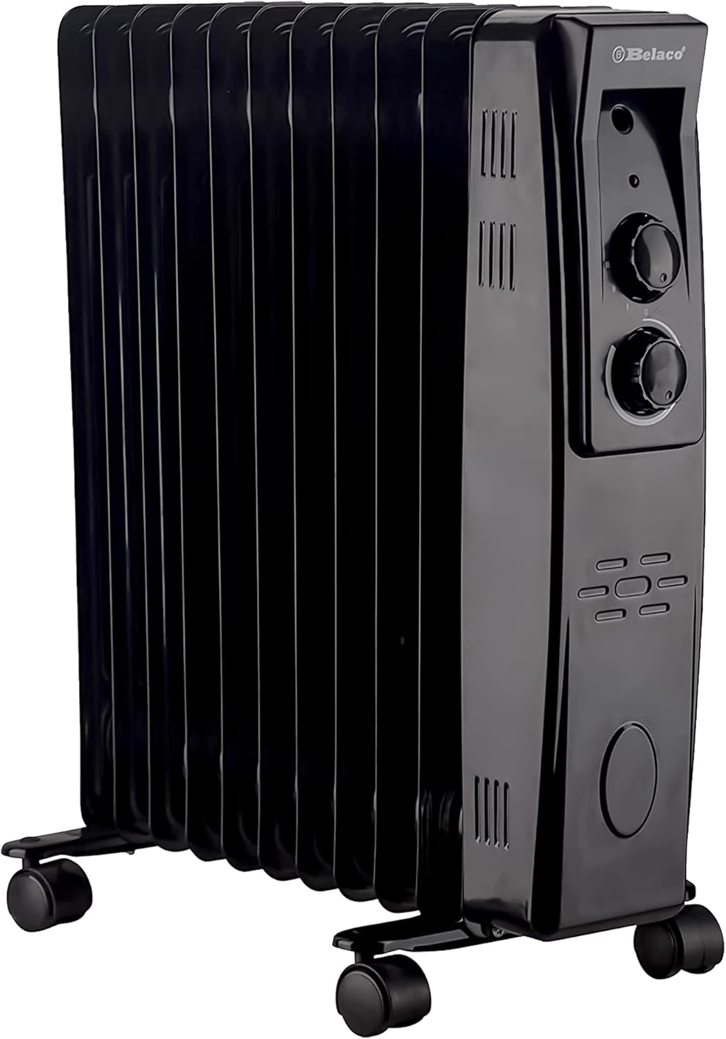 Belaco 2500W Oil Filled Radiator Heater, 11 Fins Portable Electric Radiator with Adjustable Thermostat, 24h Timer & Safety Cut-Off, Energy Saving Room Heater for Home & Office - Black