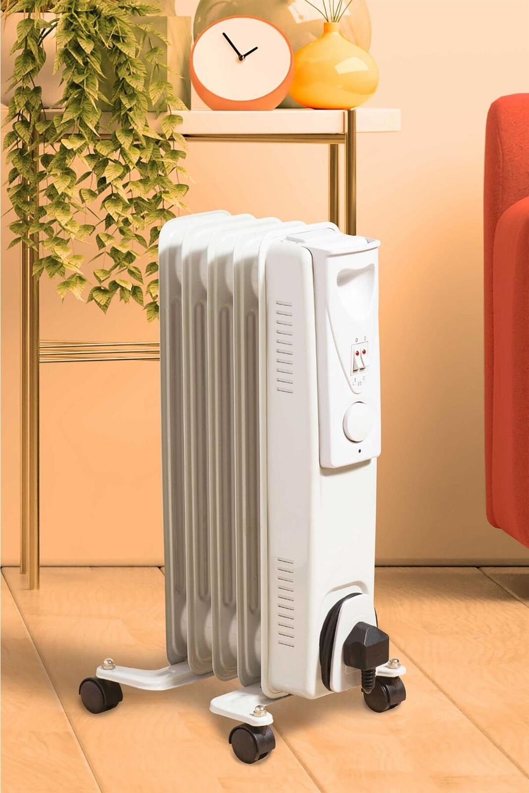 7Fin 1.5kW Portable Electric Oil Filled Radiator Caravan Heater - 3Settings