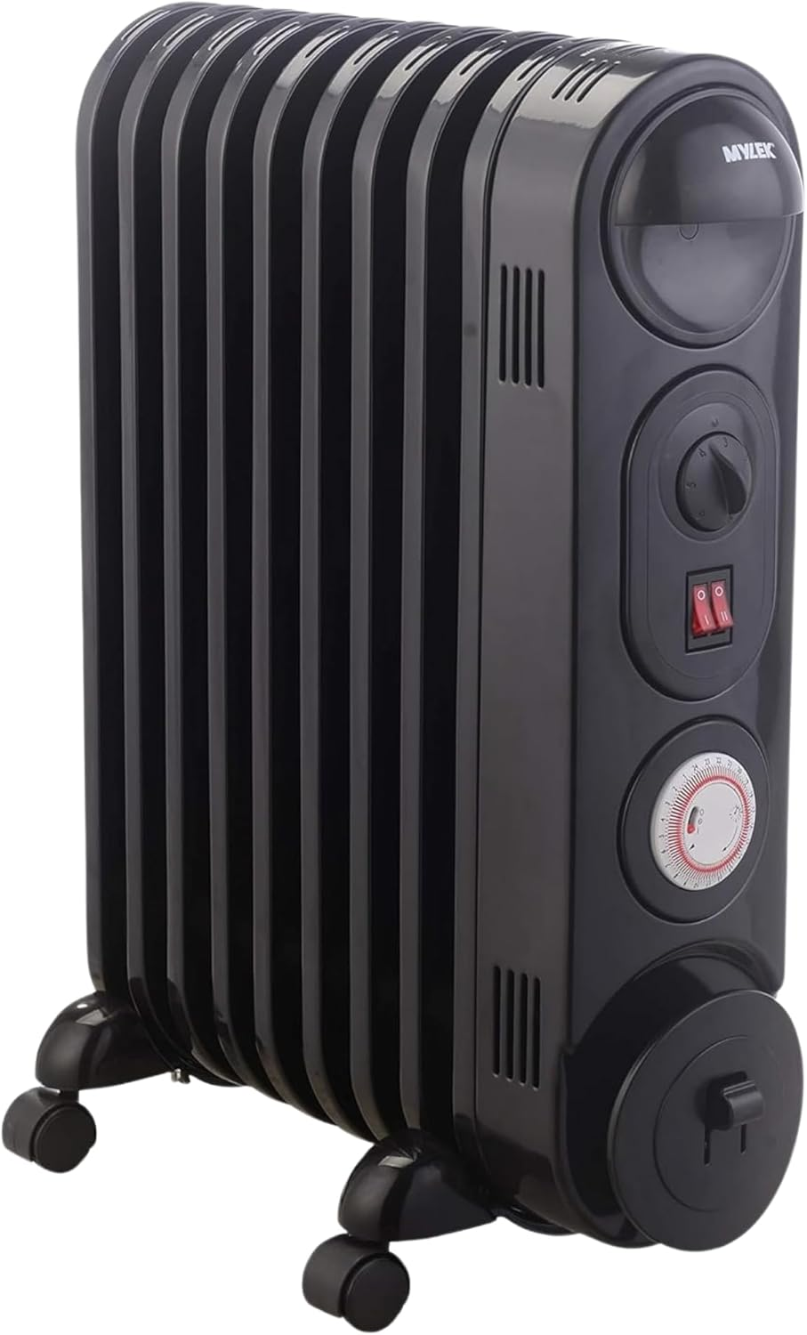 Oil Filled Radiator Heater Electric, Portable 2KW Black, Thermostat and 24Hr Rep