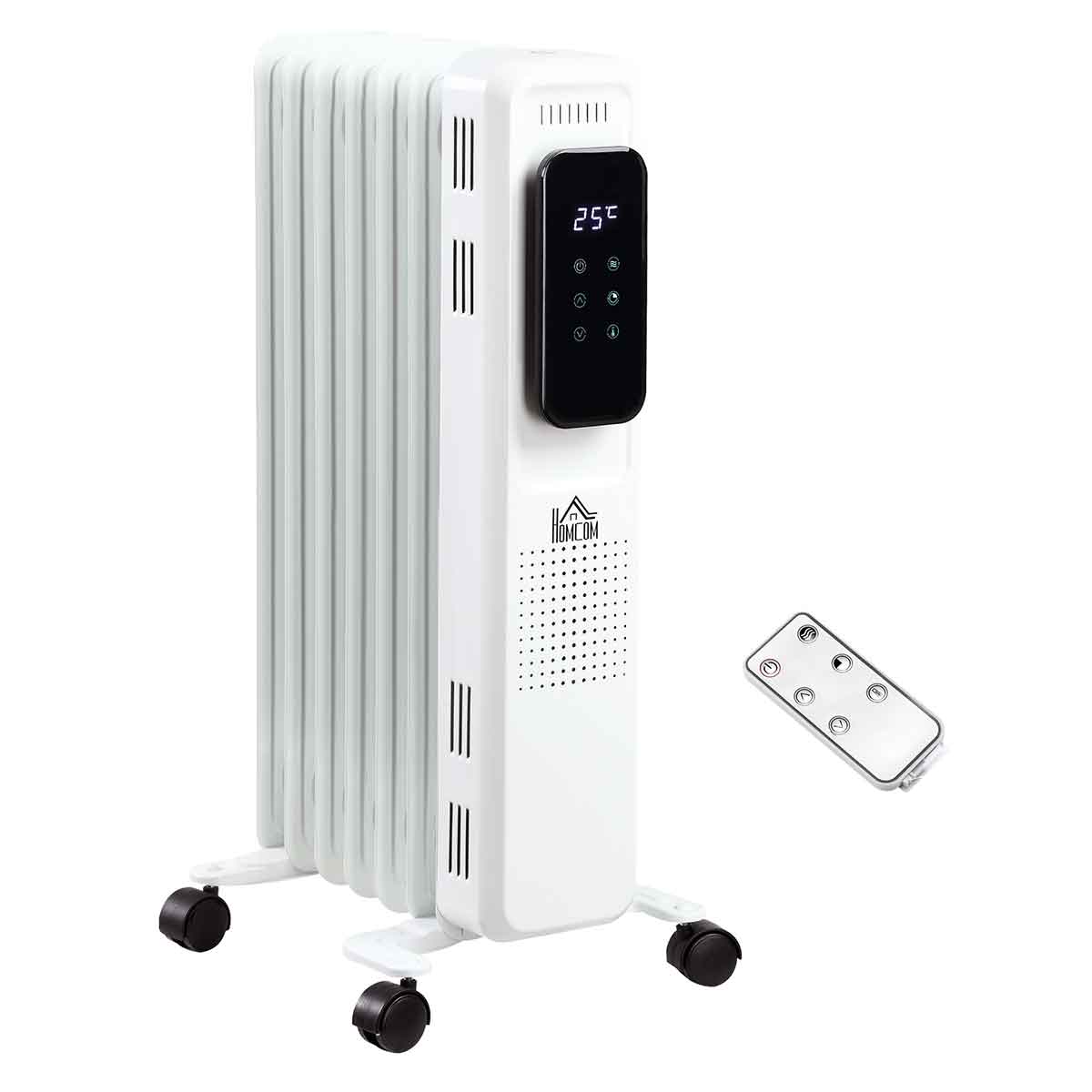 Oil Filled Radiator Heater with Heat Settings & Remote Control, White