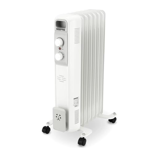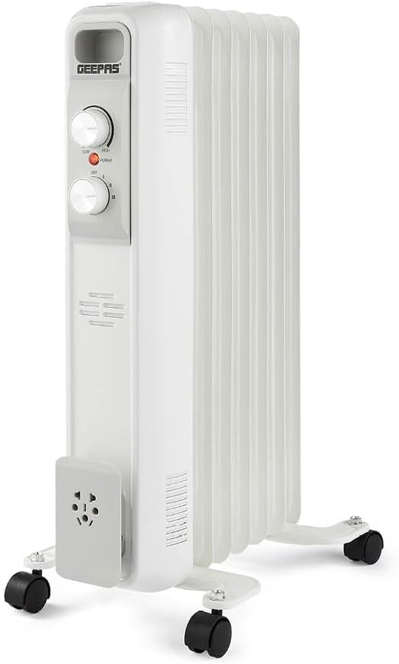 Geepas Oil Filled Radiator Heater 1500W, 7 Fin | Portable Electric Heater 3 Heat Settings | Adjustable Thermostat Safety Cut-off Overheat Protection Energy Efficient Heating | 2 Year Warranty White