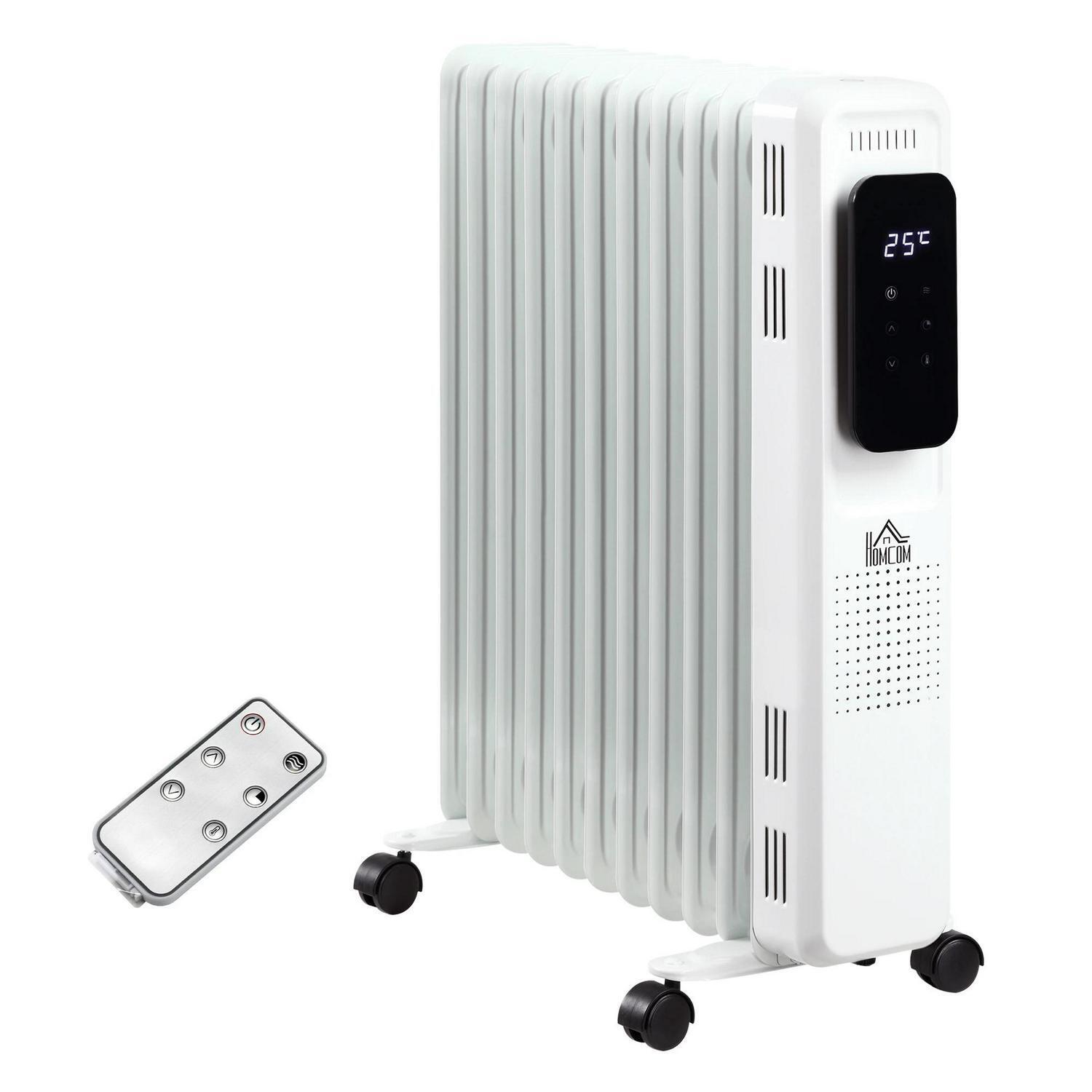 HOMCOM 2500W Oil Filled Radiator Heater w/ 3 Heat Settings Remote Control White
