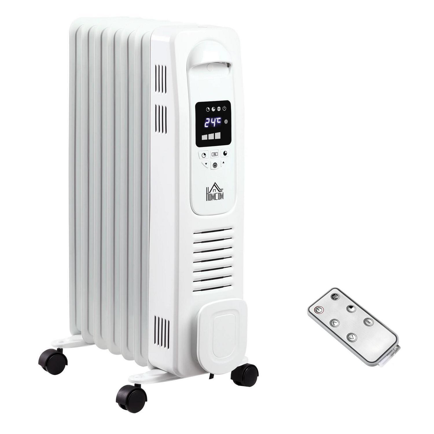 HOMCOM 1500W 7 Fin Oil Filled Heater Radiator for Home, White