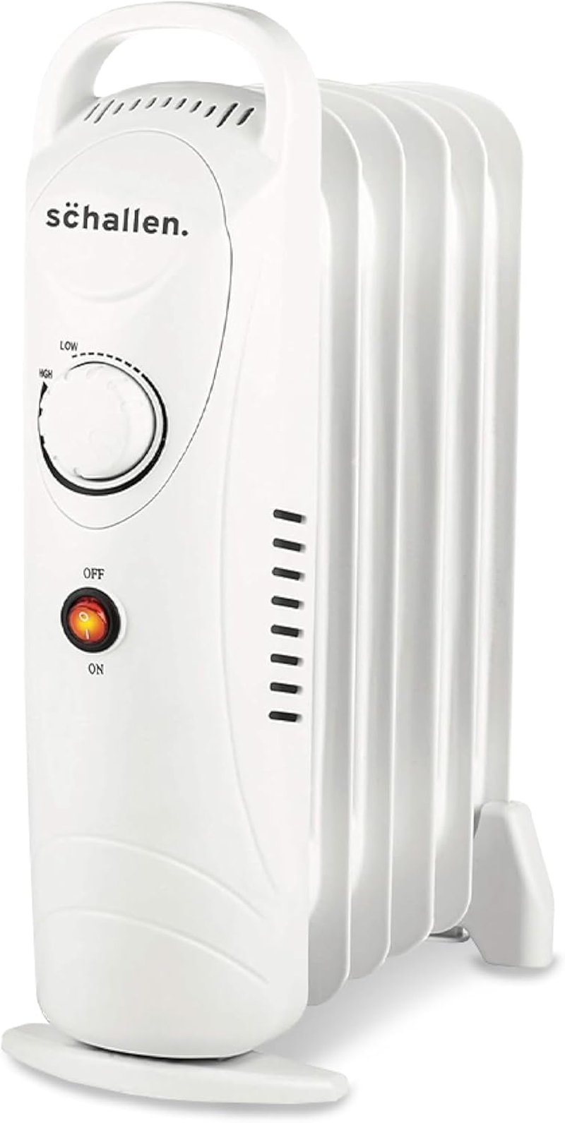 Schallen Portable Electric Slim Oil Filled Radiator Heater with Adjustable Temperature Thermostat, 3 Heat Settings & Safety Cut Off (Grey, 800W | 6 Fins)