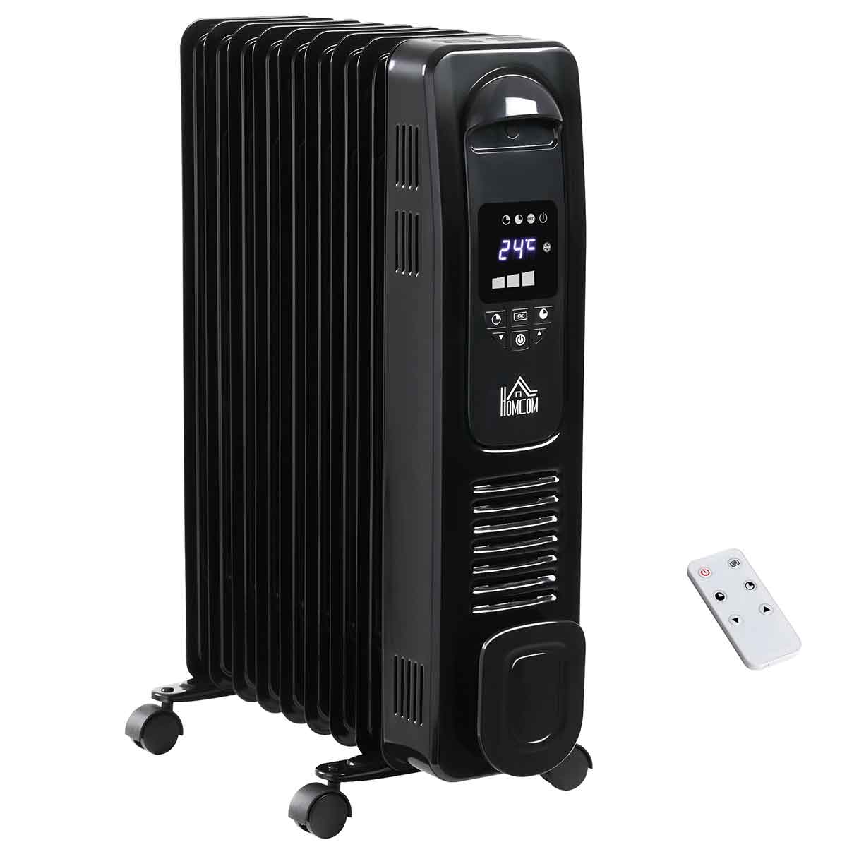 HOMCOM Oil Filled Radiator Electric Heater 3 Heat Settings Remote Control Black