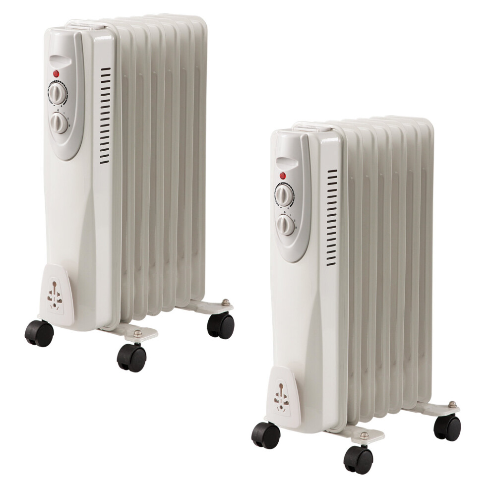 (2) 7 Fin 1500w Oil Filled Radiator Heater 1.5kw Portable White Thermostat Settings