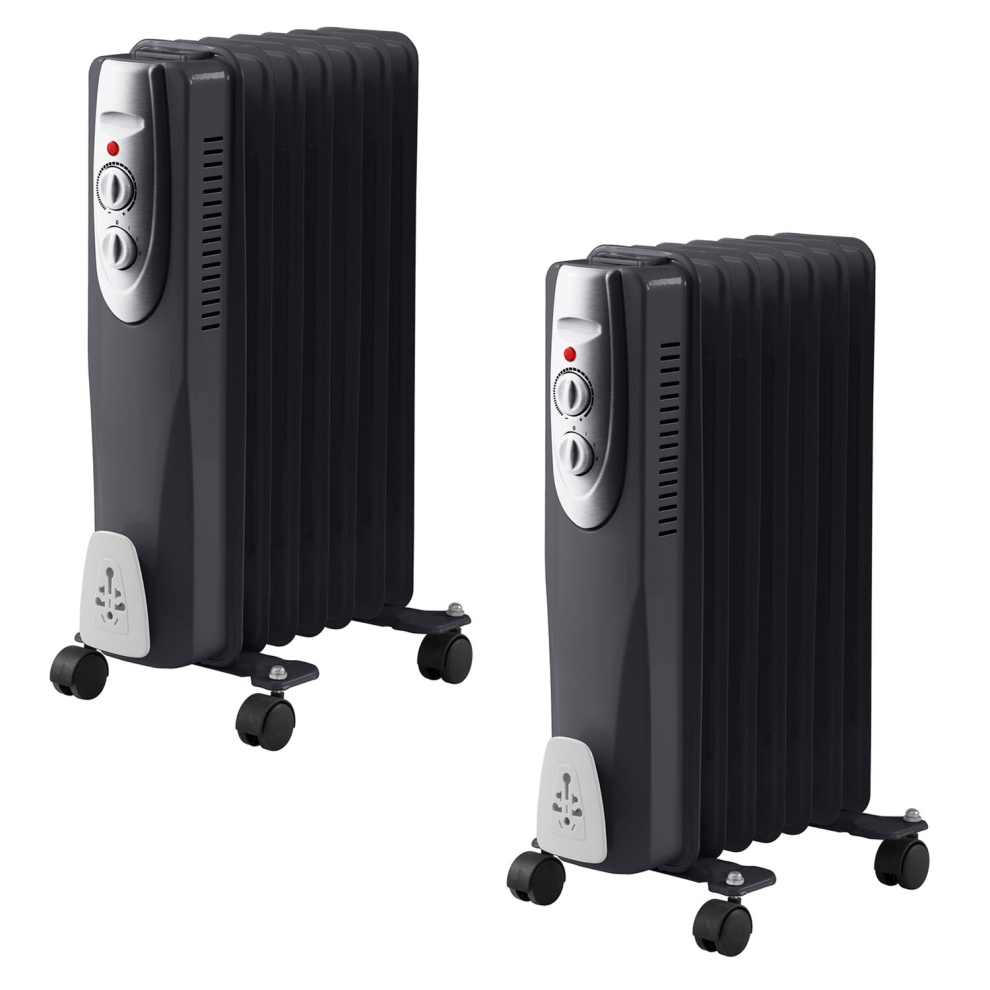 (2) 1500w Oil Filled Radiator Portable Heater Black 7 Fin 1.5kw 3 Electric Settings