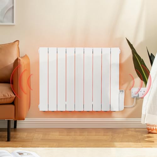 BTGGG 1500W Electric Oil Filled Radiators Wall Mounted Electric Heater 9 Fins Energy Efficient Electric Radiators with 7 Days/24H Timer and Thermostat,LED Display & Safe Lock for Home Use