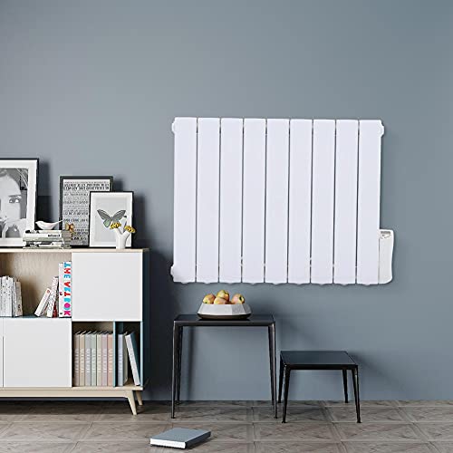 1500W Oil Filled Radiators, Wall Mounted Electric Heater with Timer 7 Days/ 24 Hours, 9 Fins Aluminum Oil Heater with Adjustable Thermostat, 77x8x57.5cm