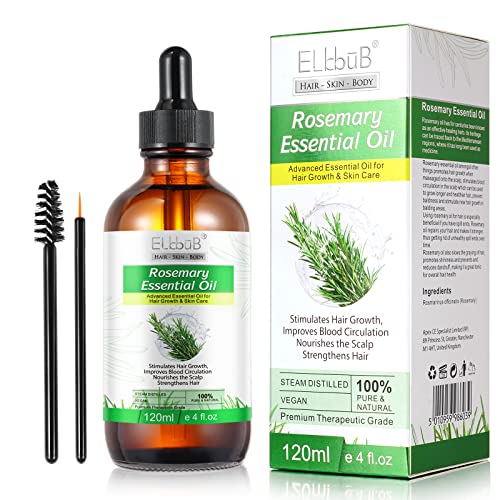ELBBUB Rosemary Oil for Hair Growth - Undiluted Rosemary Oil for Hair Skin - Cleansing Rosemary Essential Oil for Dry Scalp Care Rid of Itchy and Dry Scalp, 1, 120.0 millilitre