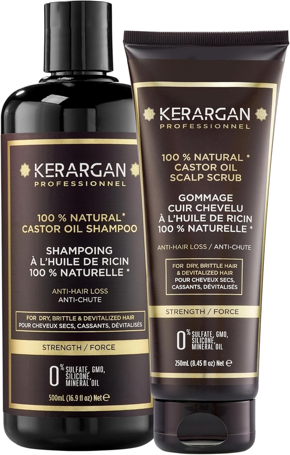 Kerargan - Anti-Hair Loss Shampoo and Scalp Scrub Duo with Castor Oil for Dry,
