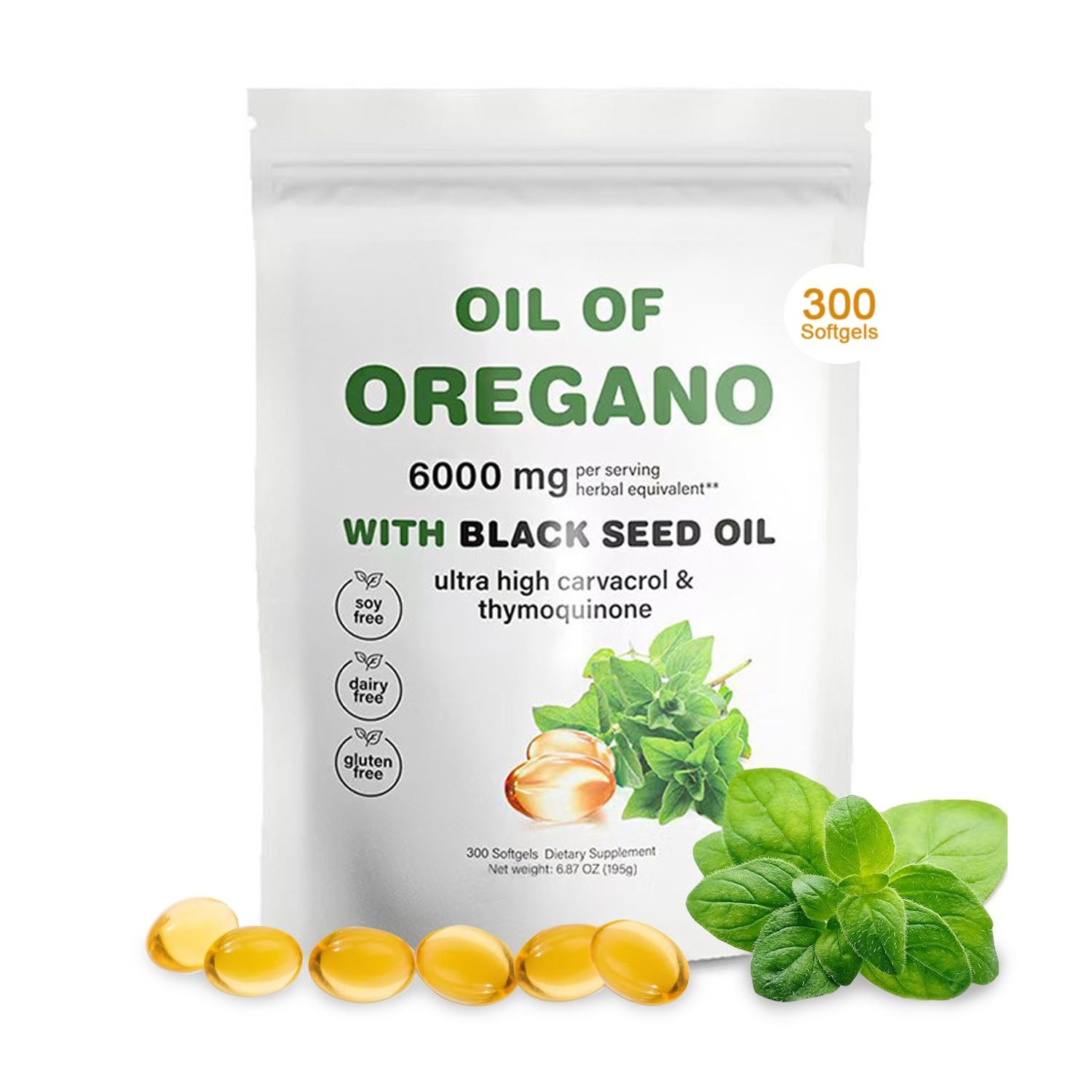 Oil of Oregano Softgels, Oregano Oil 300 Softgels,6000mg Oil of Oreganowith Bla